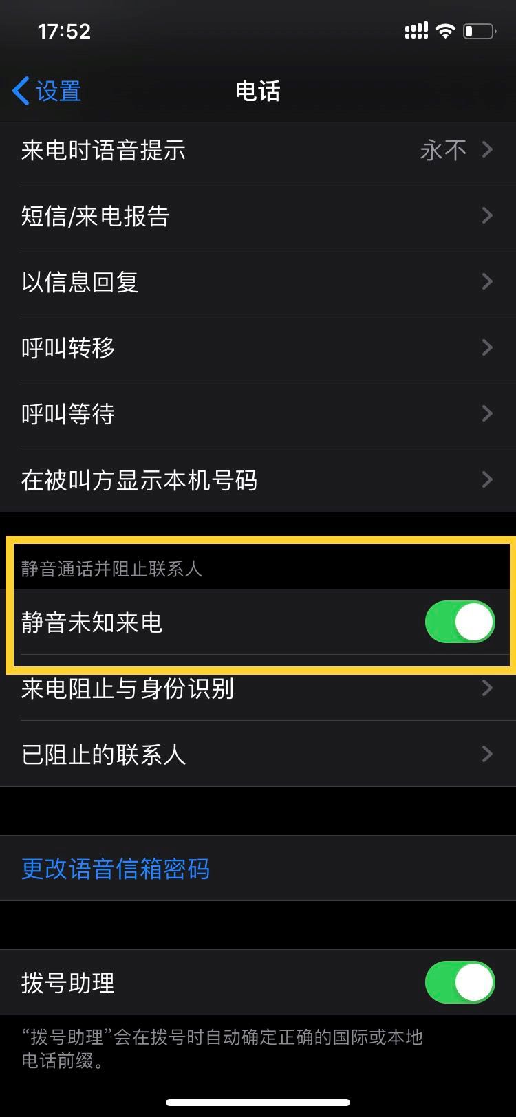 对于陌生来电,可以设置静音。小雷怀疑这是苹果针对骚扰电话的一个“曲线救国”方法……