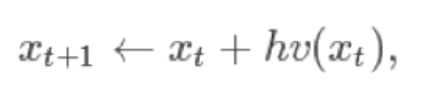其中是第t次迭代的结果,h是步长,v(x)是如下向量场: