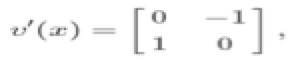 通过这两个矢量场的组合,我们可能会得到一个稍微更好的模型,但仍然是不收敛的矢量场。衡量矢量场的效果的一种方法是查看其雅可比矩阵v'(x)的特征值。雅可比矩阵是矢量场的导数,对于收敛的矢量场,它被称为海森矩阵或二阶导数(译者注:关于雅可比矩阵和海森矩阵可以参阅网络资料——http://jacoxu.com/jacobian%E7%9F%A9%E9%98%B5%E5%92%8Chessian%E7%9F%A9%E9%98%B5/)。与总是对称的海森矩阵不同,非收敛场的雅可比是非对称的,它可以具有复杂的特征值。例如旋度场的雅可比矩阵是