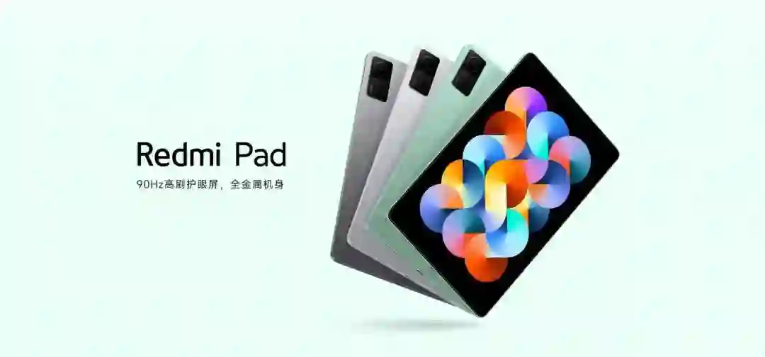 Redmi 首款平板 Redmi Pad 面向国内发布,定位入门级。Redmi Pad 采用 Unibody 一体化全金属机身,2000 x 1200 分辨率、90Hz 高刷新率的 10.6 英寸显示屏,通过了莱茵硬件低蓝光+SGS 低视觉疲劳认证。该机搭载联发科天玑 G99 处理器,8000mAh 电池,前后 800 万像素摄像头,前置摄像头支持人像居中功能。