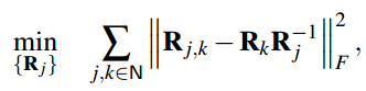 平均旋转的问题的输入是一些帧之间的相对旋转,而输出是这些帧的绝对旋转,这里使用F范数度量旋转误差。并且所有的帧从共视图中取得。