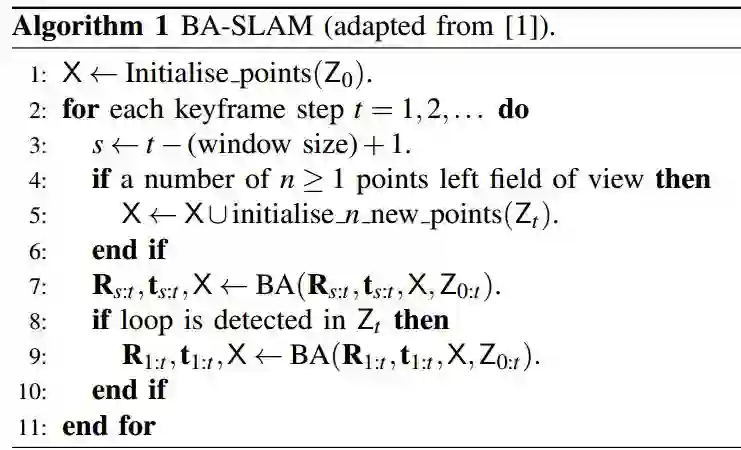 传统的BA-SLAM算法往往使用类似于Algorithm 1的流程,但是一些小的细节上的改变会使系统的性能发生很大的变化。这样的算法受限于高度复杂的系统和纯旋转的运动。