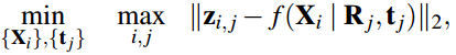 在求得绝对的旋转之后,问题变成一个已知旋转的问题,使用如下的式子来进行优化。相比于最小化重投影误差,这里最小化最大的重投影误差,可以视为无穷范数,L-infinity SLAM的名字由此而来。