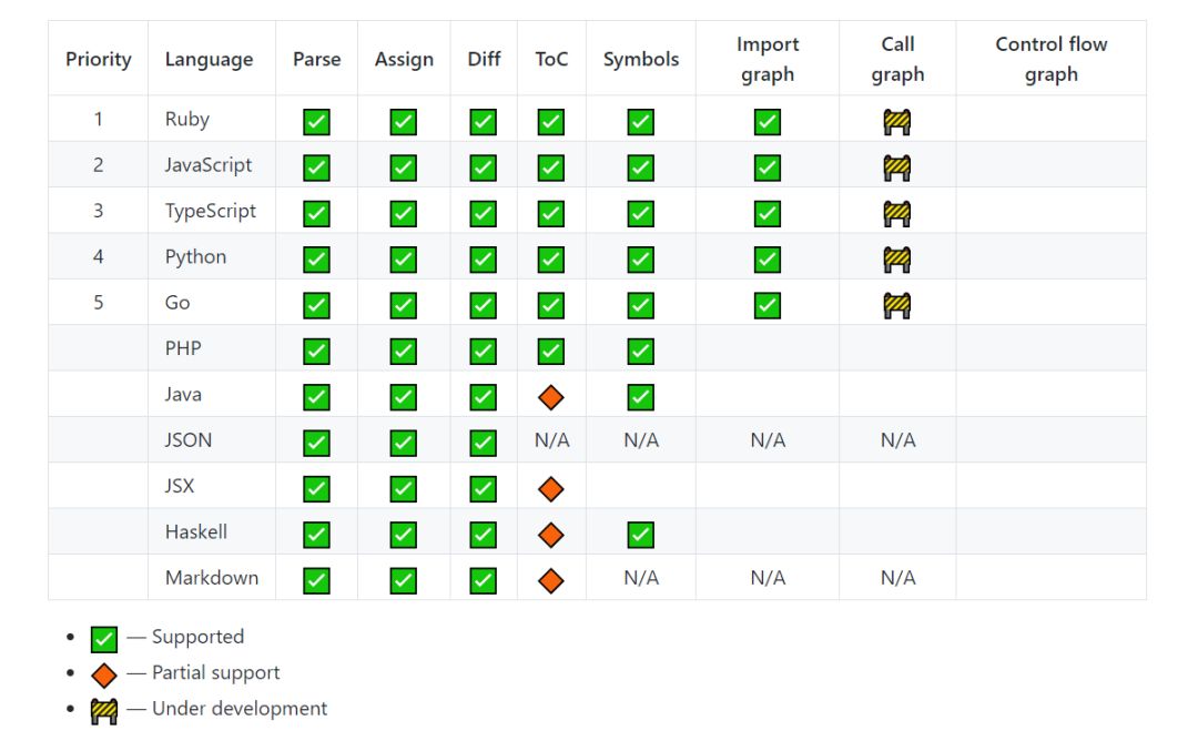 该库由 GitHub Semantic Code team 完成。这支团队主要负责解决分析、解释 GitHub 上公开代码的任务,使用 Haskell 语言。
