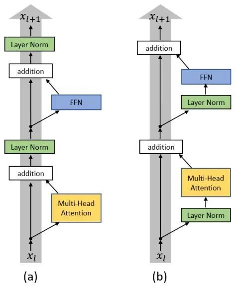 图3:(a) Post-LN Transformer;(b) Pre-LN Transformer