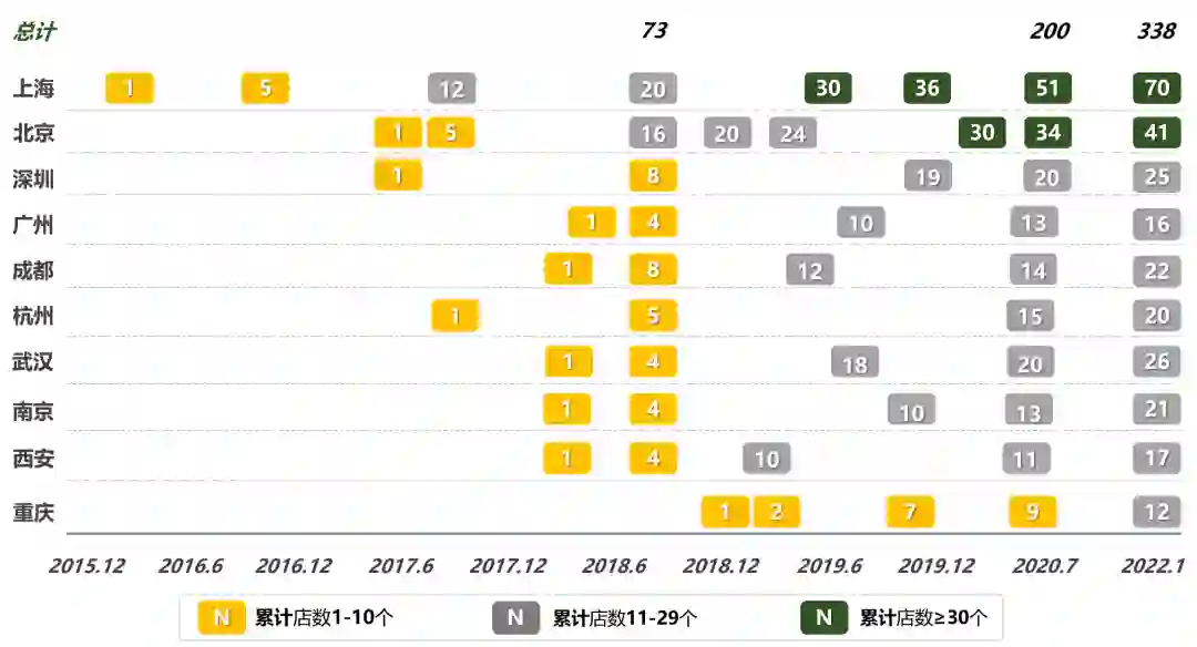 (图7:盒马核心业态的扩张进程,大店&mini店,2016.01-2022.01)