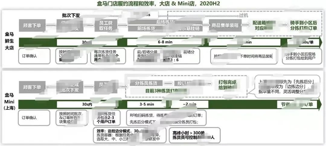 (图11:盒马门店履约流程SOP和效率分析,2020H2)