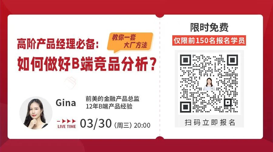 3月30日周三晚20点,前美的金融产品总监@Gina老师,结合12年的B端产品经验教你一套有效的B端竞品分析方法~