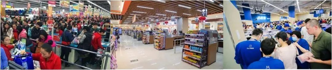 (图2:卖场人流对比,20年前 VS 今天 VS 盒马X会员店)