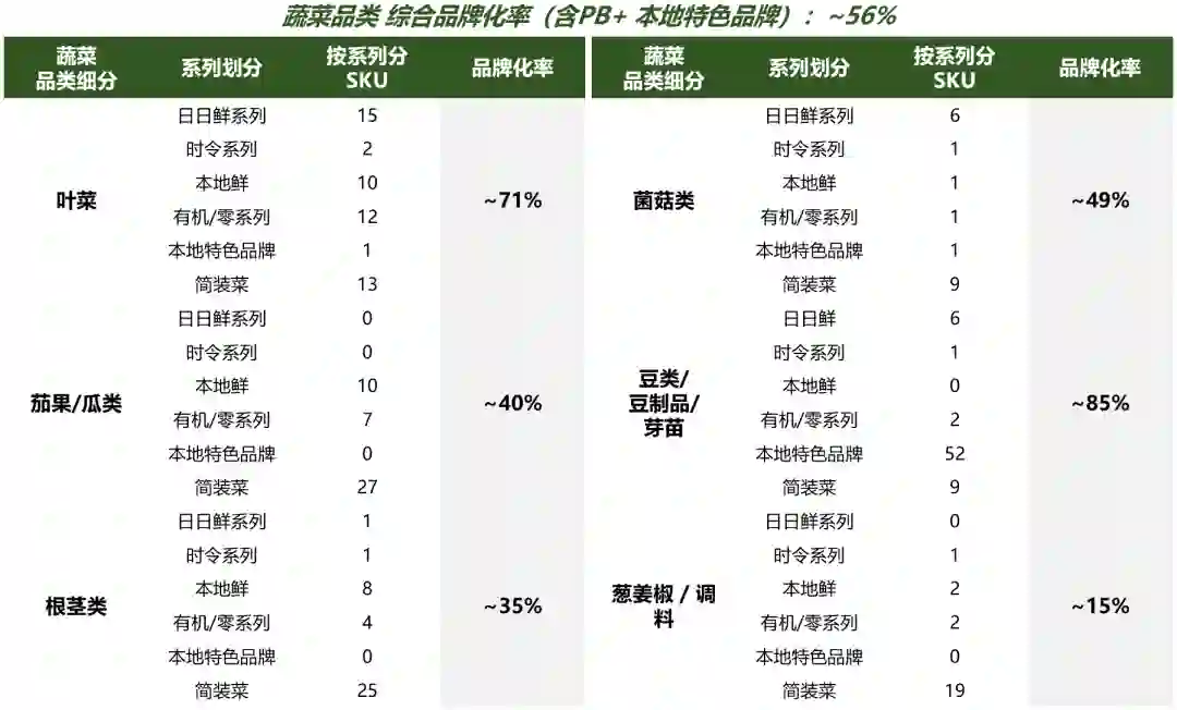 我们认为,对于当地生鲜老品牌,不妨适当降低比例,通过更强的买手策略,吸纳一些区域性优质品牌的短保SKU,甚至上PB不断测试,而非采取同质化商品策略。