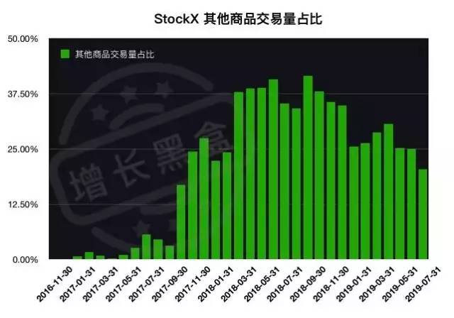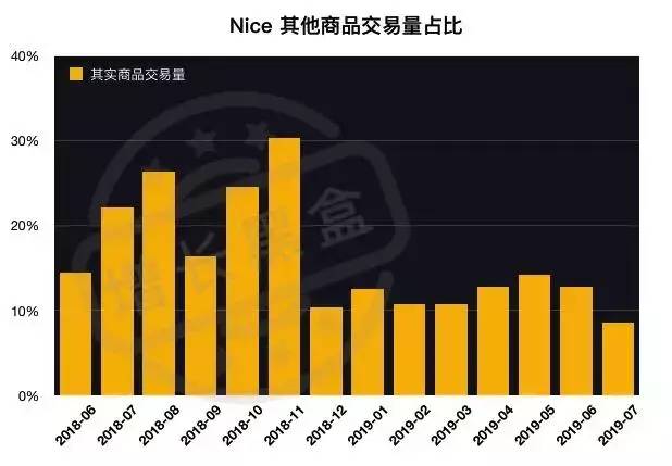 反观nice,自2018年底开始反其道而行之,球鞋以外的其他商品交易量急剧下降,从30%下降到10%。