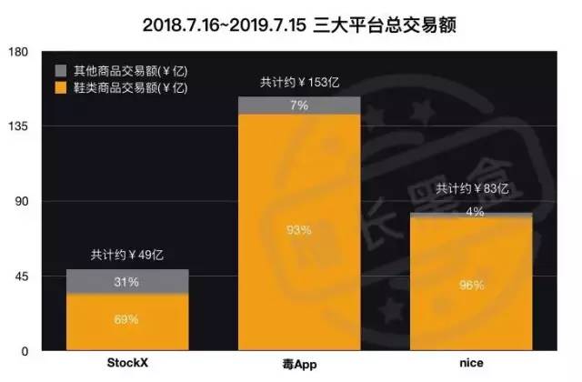 2018年才从图片社交平台转型球鞋转卖交易平台的nice,后发先至也已在总交易量上超过StockX,GMV已经接近StockX的2倍,如果从GMV上来看,nice也已经成为全球第二大球鞋转卖平台。