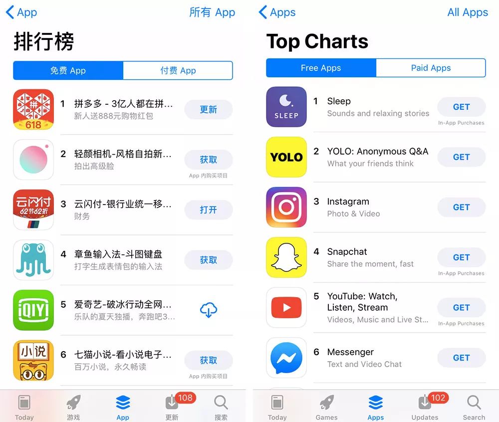 不管是中区还是美区的 App Store,免费榜头部基本被大公司承包