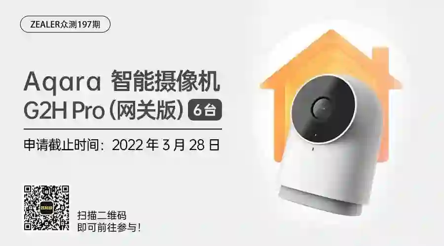想在家里装摄像机又怕隐私泄露?那你一定不能错过这款摄像机!本期 ZEALER众测新品——绿米 Aqara 智能摄像机 G2H Pro(网关版),支持 Apple HomeKit 安全视频、可设置隐私遮挡区域,层层保护你家的隐私安全;提供 NAS 和 iCloud 等多种存储方式,无惧记录丢失;集成 Zigbee 3.0 网关功能,轻松实现全屋智能联动…扫上方二维码或戳左下角「阅读原文」即可申请免费试用。
