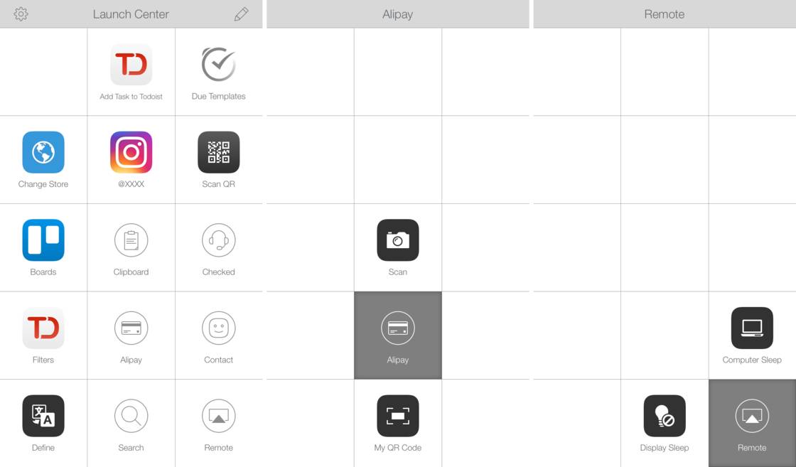 Launch Center Pro 主屏;支付宝分组;遥控分组