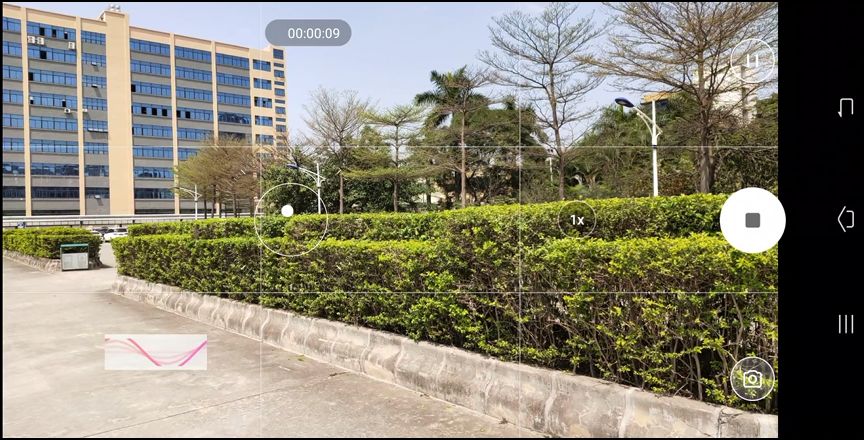 有别于大部分OIS防抖,仅能做到横向和纵向的抖动补偿,APEX 2020 直接将微云台嵌入了主摄,以机械结构的方式平衡了前后左右多个维度的抖动。从技术难度上说,在狭小的机身空间内,塞入一颗物理云台,这本身就是一个难点,而从具体的成像效果来看,只要画面的抖动范围不超出屏幕内的小圆圈,都能获得非常好的拍摄体验。