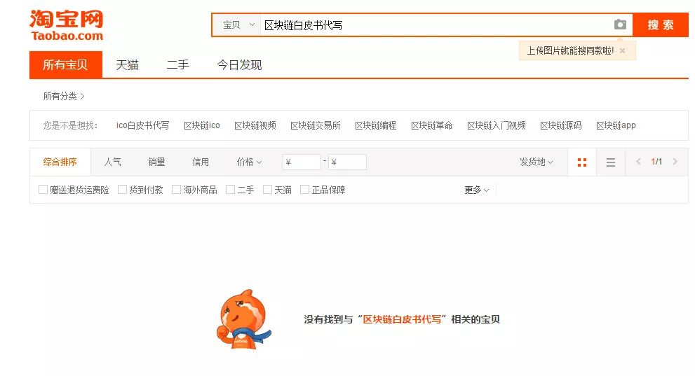 3月21日消息,36氪发现,“区块链白皮书代写”已成淘宝禁售物品,在淘宝搜索上述关键词均已搜不到结果。