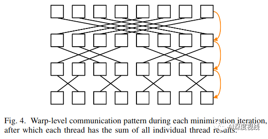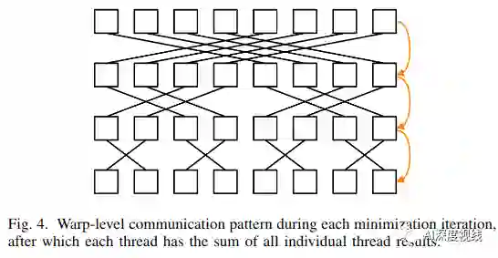该方法的新颖之处在于线程到功能的分配。以前提出的方法使用的是一对一分配,这意味着只有较大的特征数才能使用大量线程。这会对功能计数较小的GPU上的延迟隐藏产生不利影响,这通常适用于VIO。作者的方法通过使wrap协同解决特征补丁来加快算法的速度,减少了每个线程的工作量,同时使用了最快的通信介质。