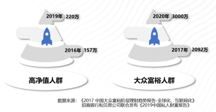 以前的财富管理都是服务于高净值客群,即可投资产在1千万以上的。但随着技术的发展,我们希望借助科技的手段,能够服务于可投资产在100万以上的人群,也就是大众富裕阶层。