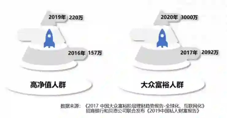 另外是大众富裕阶层,个人可投资产在100万人民币以上,2017年年底达到了2千万,预计明年年底会接近3千万的规模。因此,国内财富管理市场增长潜力和市场规模都是巨大的。