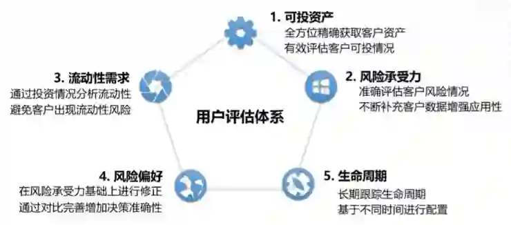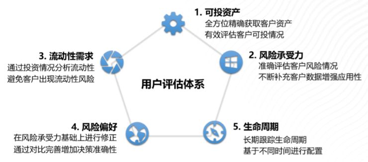 分析一个客户基本上有以下几个流程:首先要看看这位客户的可投资产情况,通过资产评估知道可投资产状况,估算出风险承受能力以及流动性的需求;接下来是风险偏好和风险承受能力;最后看看投资周期是什么样的。通过这几个步骤就可以让我们做到比用户更懂用户。