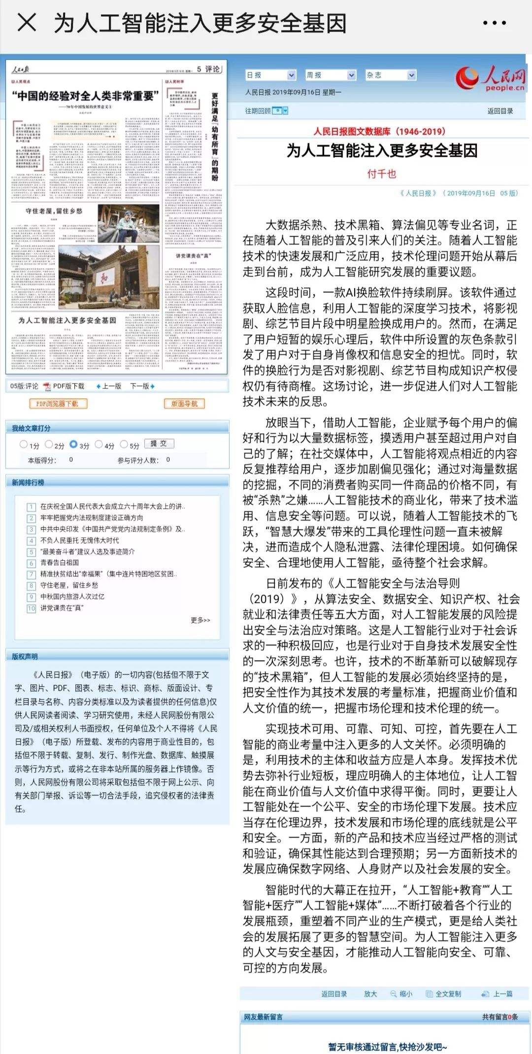 1.人民日报评人工智能:注入更多安全基因推动发展