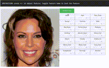 为了查看 TL-GAN 模型控制图像生成过程的灵活程度,我构建了一个交互式 GUI 来探索沿着不同特征轴调整特征值的效果。