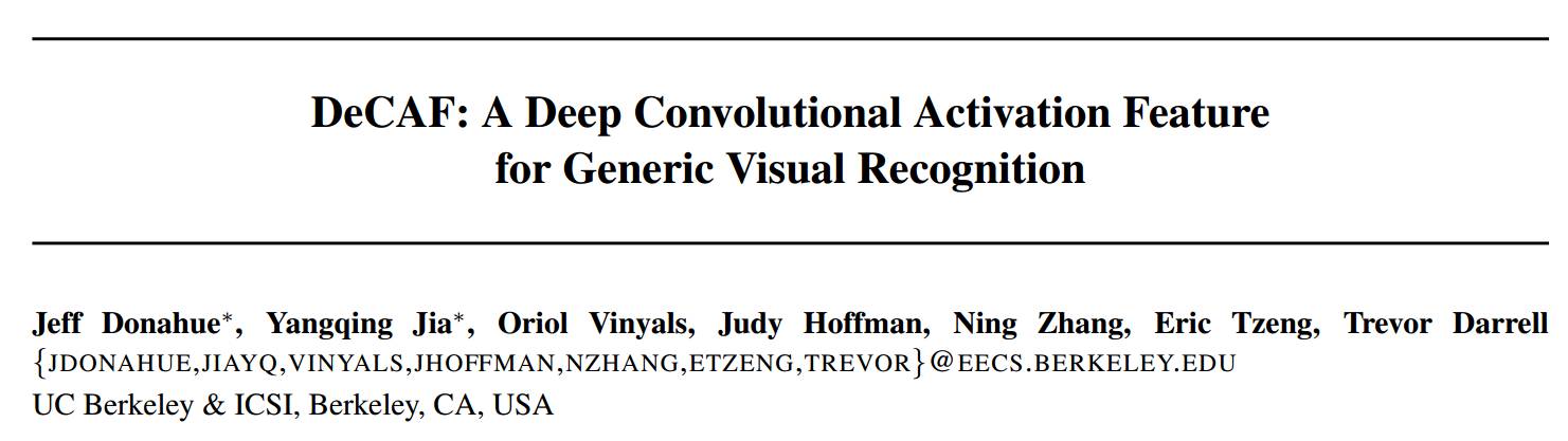 2. 论文标题:DeCAF:应用于一般视觉识别任务的深度卷积激活特征(被引用次数:1404)