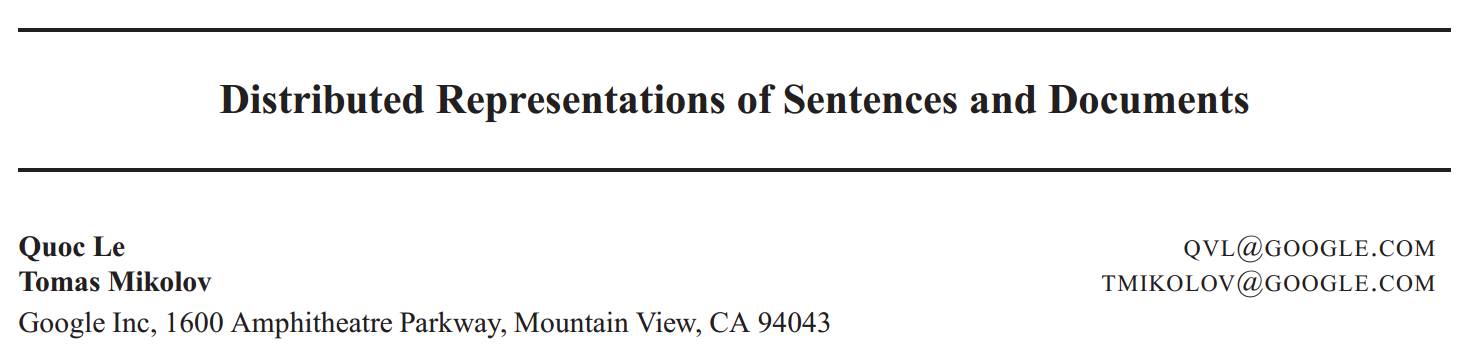 论文摘要:许多机器学习算法要求输入数据必须表示为长度固定的特征向量。如果输入的是文本,最普遍的一个定长特征为词袋(bag-of-words)特征。词袋特征虽然普及度较高,但是却有两大弊端:它们会打乱单词顺序和忽视单词含义。例如,“powerful” ,“strong” 和 “Paris”这三个单词的分布是等距的。在本文中,我们提出了段落向量(Paragraph Vector),这是一种可以从长度不定的文本(如语句、段落和文章)中学习定长特征表示的无监督算法。这种算法用一个密集向量(dense vector)表示每一篇文章,该向量经过训练后可以预测文章中的文字。密集向量的结构可以使该算法能克服词袋模型的缺陷。实验结果表明,段落向量的表现优于词袋模型和其他文本表示方法。最后,我们在几个文本分类和语义分析任务中刷新了当前的最优成绩。