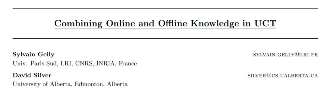 论文摘要:UCT 算法利用基于样本的搜索来学习在线价值函数。针对策略性分布(on-policy distribution),T D(λ) 算法可以离线学习价值函数。我们探讨了三种在 UCT 算法里整合离线和在线价值函数的方法。