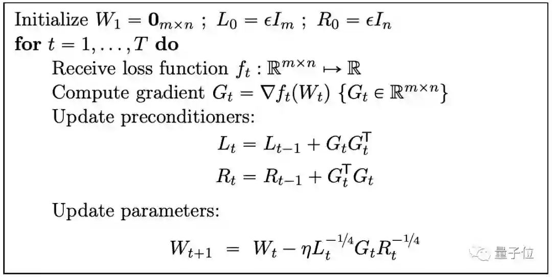 洗发水算法需要跟踪2个预条件算子(Preconditioner)的统计数值Lt和Rt。