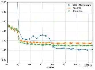 洗发水算法在和Adam或AdaGrad精度相同的情况下,只需后两者实现了约一半的相同的精度AdaGrad或亚当许多步骤,而且对学习率的宽容度比AdaGrad高。