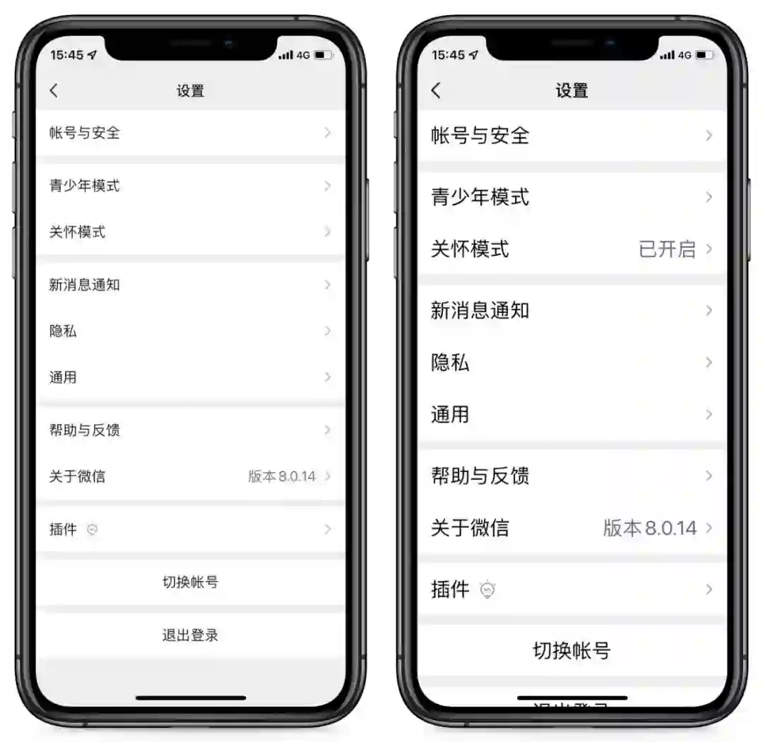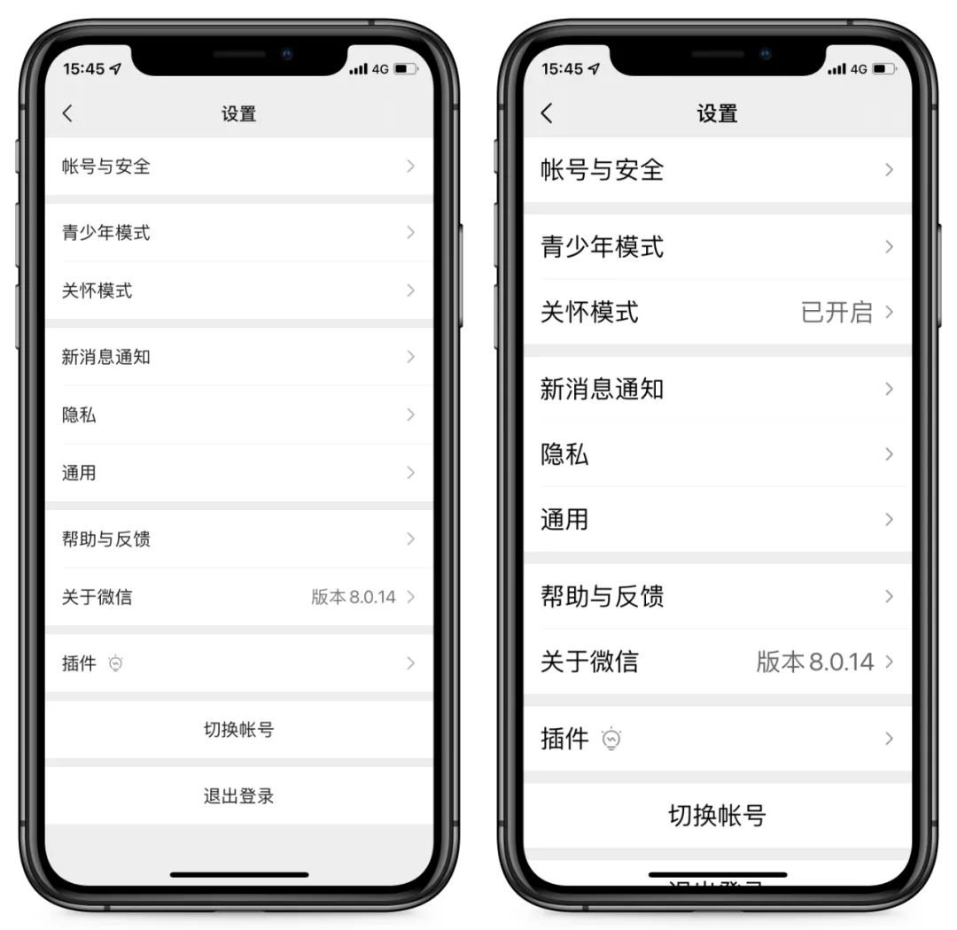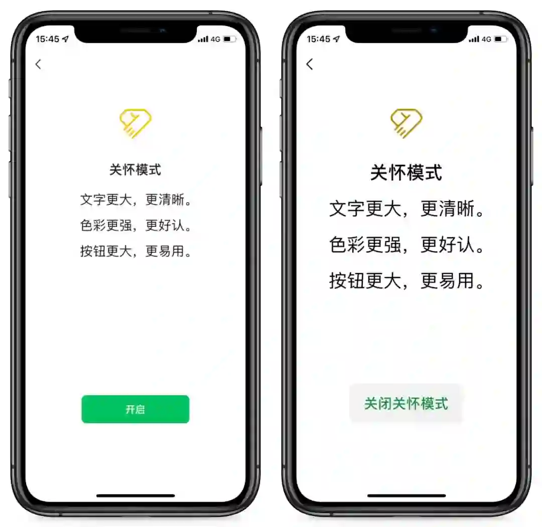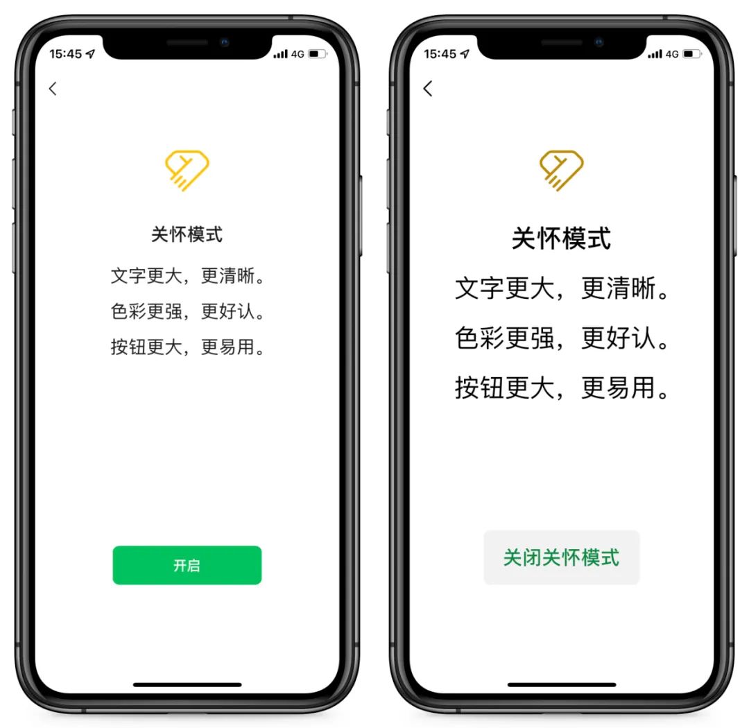 更新微信后开启关怀模式(上图右侧为开启模式),微信转账、红包、朋友圈等界面文字全部变大,按钮也更加清晰,此功能对于长辈来说很贴心,快帮家里长辈更新打开吧。