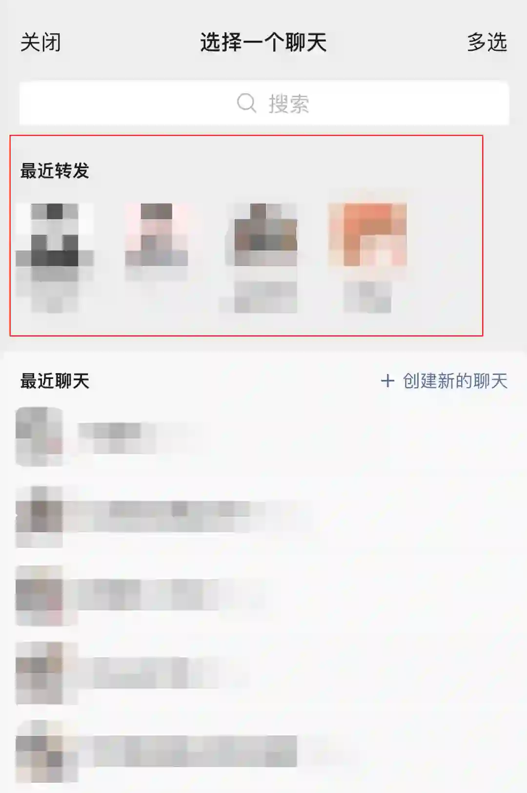 原本是直列式,纵向排列,本次更新后改为了横向排列,且好友头像更大。我们可以更方便找到转发对象。