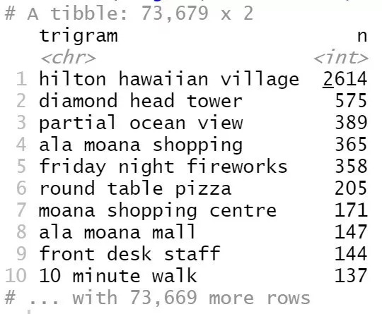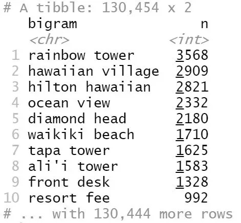 所以,在Hilton Hawaiian Village的评论中,哪些是最常见的二元词组呢?