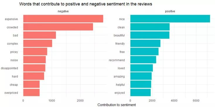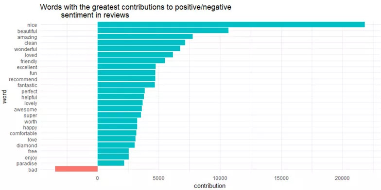 ggtitle('Words that contribute to positive and negative sentiment in the reviews')