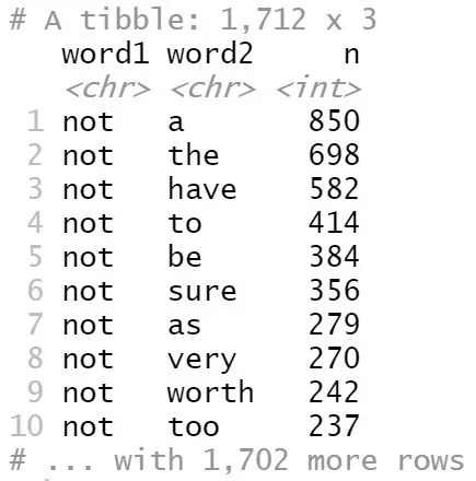 unnest_tokens(bigram, review_body, token = "ngrams", n = 2)