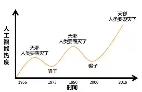 文因互联的鲍捷老师曾给出一个人工智能三次热潮的曲线图(图 2),人工智能至今经历了三次大的热潮。而这一轮人工智能热潮,是伴随着大数据和深度学习的兴起。深度学习技术最早期的研究起始于上世纪六十年代的感知器,而直到最近的十年,随着软件和硬件的成熟,深度学习才取得了爆发式的进步,在多个领域例如图像识别,语音识别等都突破了人类最好的成绩。火热的人工智能带来了很多机会,也带来了很多问题。资本的大量涌入,使得市场上涌现了一大批 AI 初创公司,同时媒体的大肆宣扬,也使得大众的胃口和期望被吊得越来越高。普通的技术成果已无法吸引读者的关注,很多媒体就开始用夸张的标题和内容来吸引眼球,比如说「人类要被机器人取代」「重磅!机器开始威胁人类」等等。更不用说像 Sophia 这种伪 AI 的出现,使得人们觉得 Sophia 就是人工智能应该有的样子。而且,就好比 AlphaGo 并不能给人类端茶倒水一样,在一个特定领域的优秀表现,并不能代表 AI 技术无所不能。又例如,谷歌在 2018 年开发者大会上演示了一个预约理发店的聊天机器人,人们在大呼惊艳的同时,自然而然的觉得人工智能技术应该可以上天入地,做到任何事情,甚至取代人类。