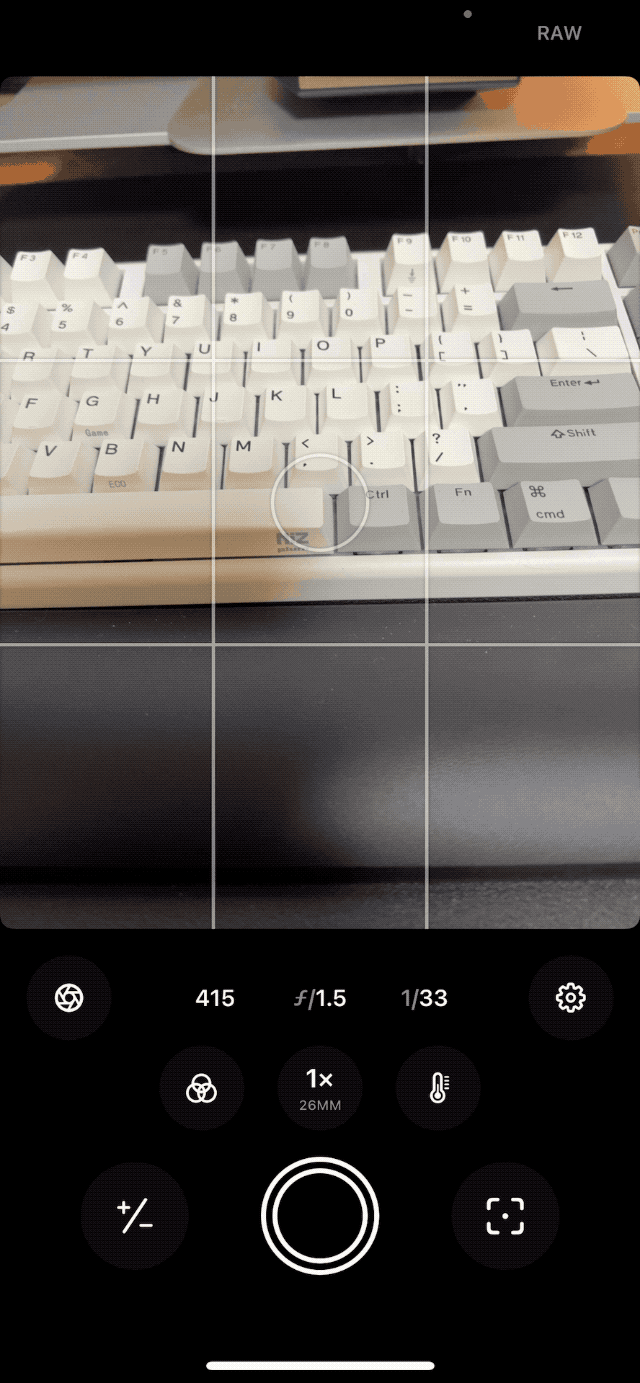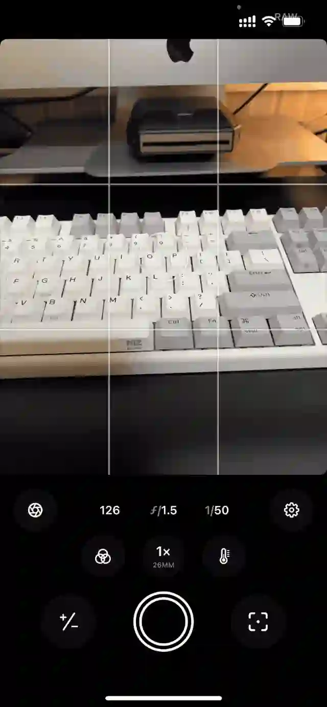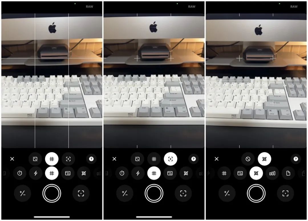 Obscura 还可以为取景画面启用三等分网格、十字线网格、水平仪等辅助线工具,帮助我更好地构图。