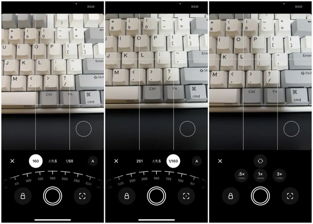 在传统的相机上,因为物理按键或者拨轮的存在,几乎没有办法一只手完成调整参数的操作。但是在手机上,我们对 App 的控制都是通过触屏来完成,因此用单手操作相机 App 也就成为了现实。