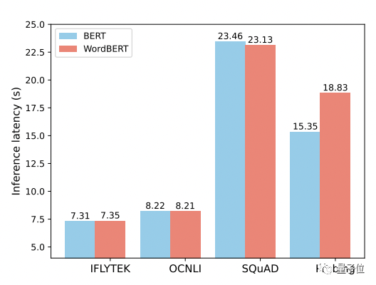 性能不差的WordBERT,在不同任务上的推理速度也并未“落于下风”。