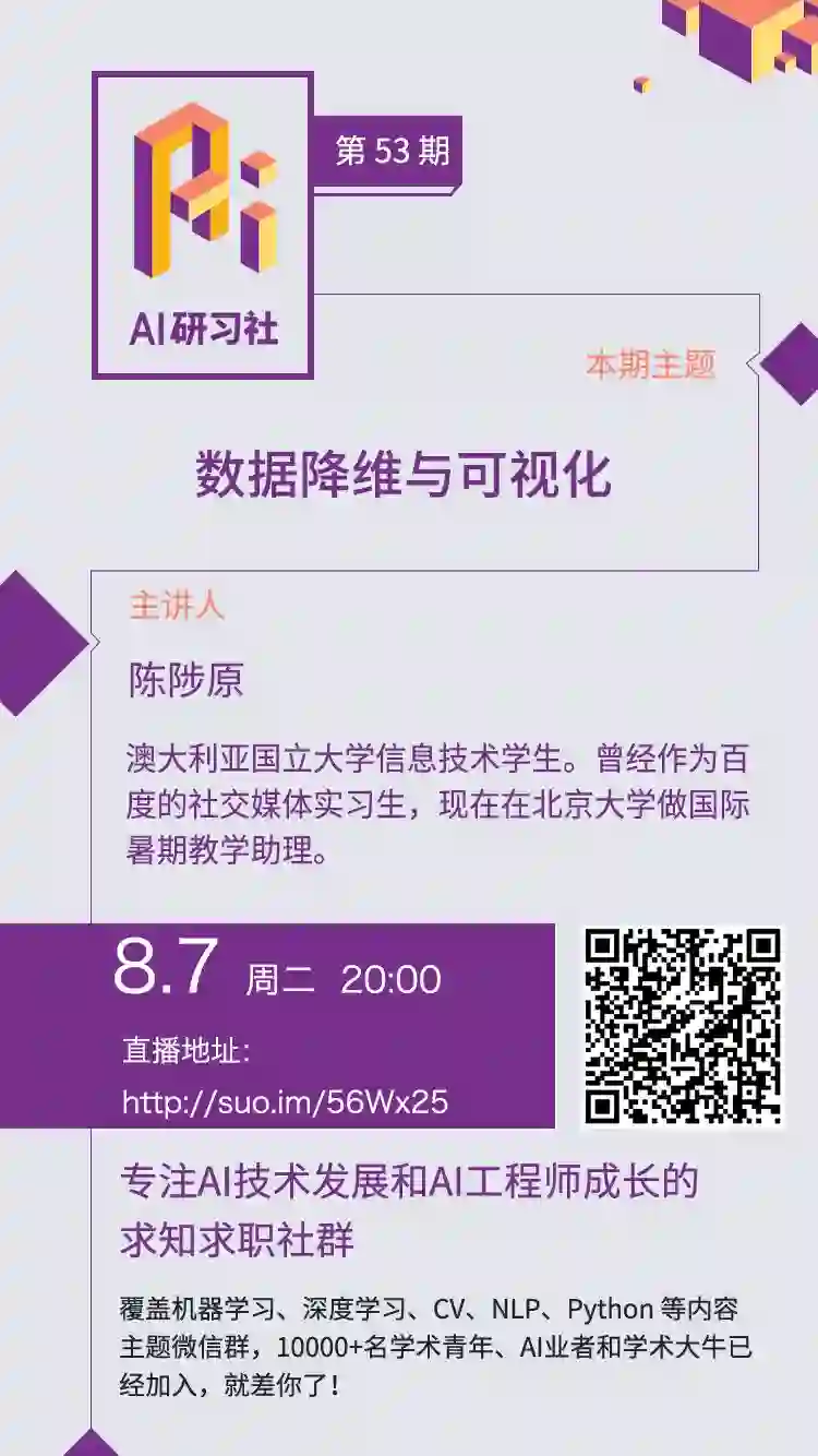陈陟原,澳大利亚国立大学信息技术学生。曾经作为百度的社交媒体实习生,现在在北京大学做国际暑期教学助理。我对人工智能非常感兴趣,之前加入雷锋字幕组翻译过CS231n斯坦福李飞飞计算机视觉课程和CS224n自然语言处理。这次公开课想要跟大家聊聊数据可视化,也是想要向各位多多请教学习。