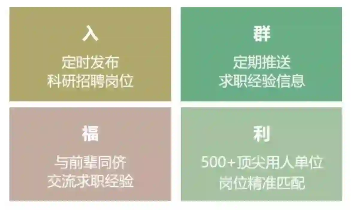 为了将您的求职需求与科研圈数据库中的岗位精准匹配,请您如实填写本调查表。完成调查后,表单将提示您微信群的入群方法。
