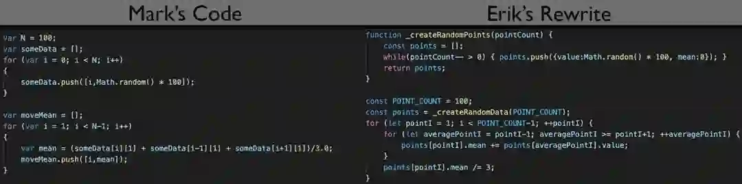 左边的代码是原来的。右边的代码是我重写的。