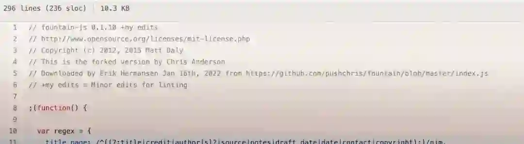作者 Nathan Friedly 在这样的源码注释中阐述了他的思考过程。也许他拯救了我,可能让我以后不用再找漏洞来修复了。从这个角度来看,重写比从头开始编写要好。你可以“捕捉”到别人来之不易的知识。