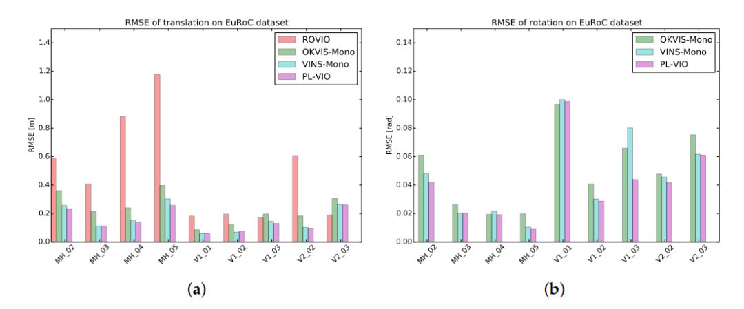 图2 四种不同方法的RMSE .(a)位移 (b)旋转