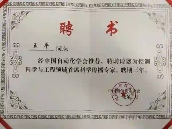 学科首席科学传播专家王平教授,重庆邮电大学自动化学院院长,中国自动化学会制造技术专委会委员,重庆市自动化与仪器仪表学会副理事长,中国仪器仪表学会理事,智能化仪表及其控制网络分会副理事长,物联网分会副理事长,全国高等学校制造自动化研究会(CUSMA)理事,中国自动化学会工业以太网专委会委员,中国计算机学会传感器网络专业委员会委员。