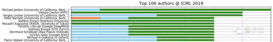 今年ICML的大赢家是是加州大学伯克利分校的Michael Jordan教授,总共有7篇文章被收录。