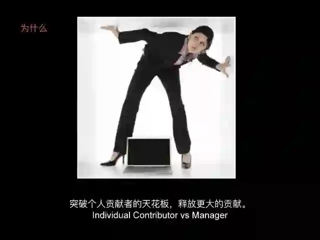我们讲技术人如何成为管理者,主要是讲如何,How 这个话题,但是我自己觉得在讨论如何成长为管理者之前,我们应该先想明白技术人为什么要成为管理者,这就是 Why 这个问题。
