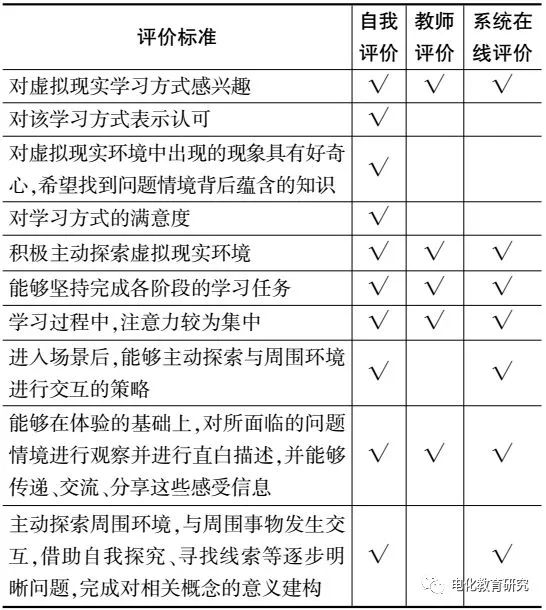 学习评价是建立在学习目标的基础之上的,需要借助观察、调查、实证等多种研究方法,对学生的过程性学习进行价值判断[9]。虚拟现实系统的学习目标是深度学习,是指学生可以结合自身的学习需求,在知识理解的基础上实现批判性学习,可以采用多种学习策略达到对学习信息的深度加工,从而实现新旧知识之间的联系,并获得知识的有效迁移。